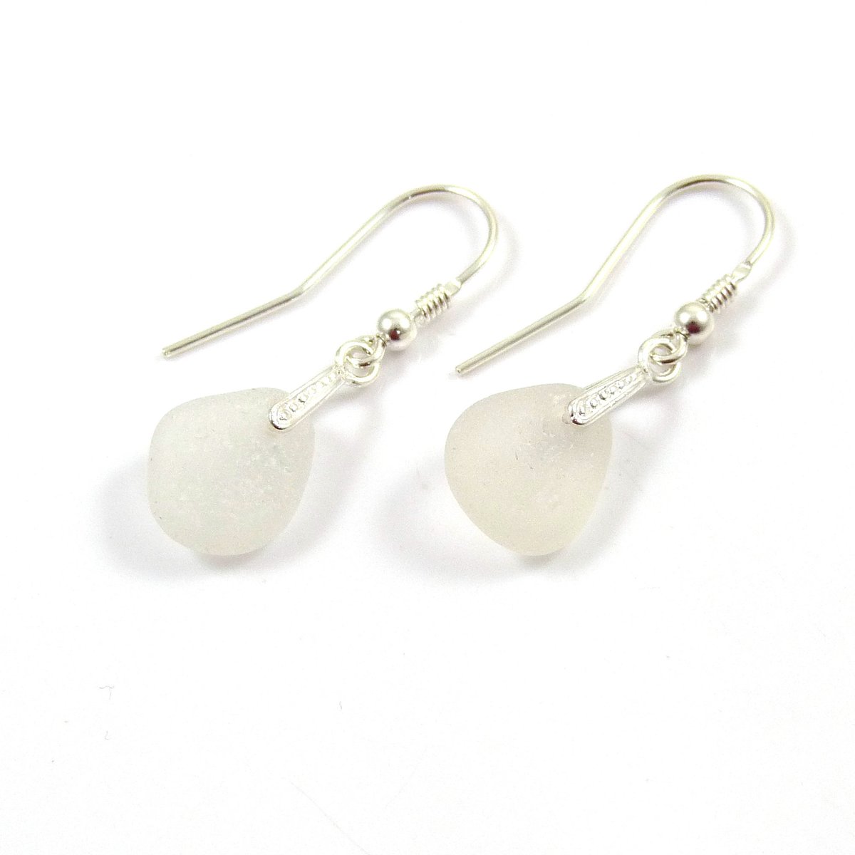 White Sea Glass Drop Earrings - Sea Glass Earrings - Sea Glass Jewellery - Drop Earrings - Glass Earrings - Sterling Silver Earrings - e50 https://etsy.me/2FRhERE