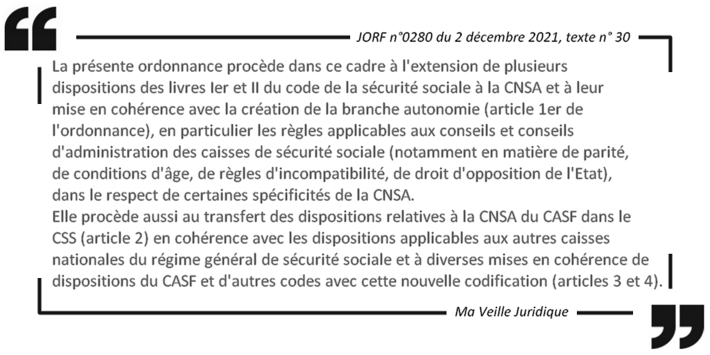 #Ordonnance du 1er décembre 2021 relative à la mise en œuvre de la création de la cinquième branche du régime général de la#SécuritéSociale relative à l’#autonomiepic.twitter.com/4zU5Tnba96