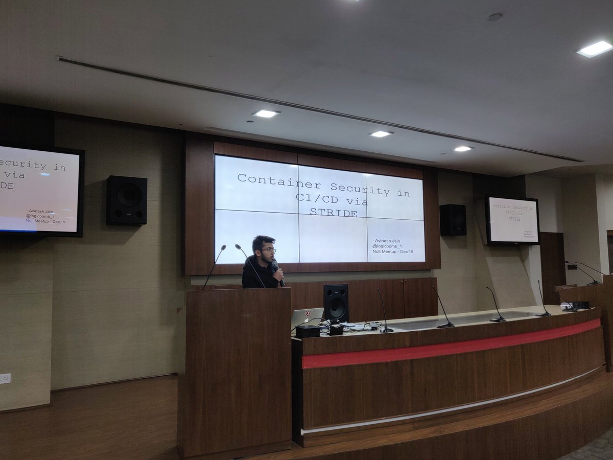 @logicbomb_1 starting off the last meetup of the year with his talk - "Container security in CI/CD"#ContainerSecurity#CICD#null0x00#nulldelhi#owaspdelhi#securitymeetup pic.twitter.com/Y3DVuDQJwC