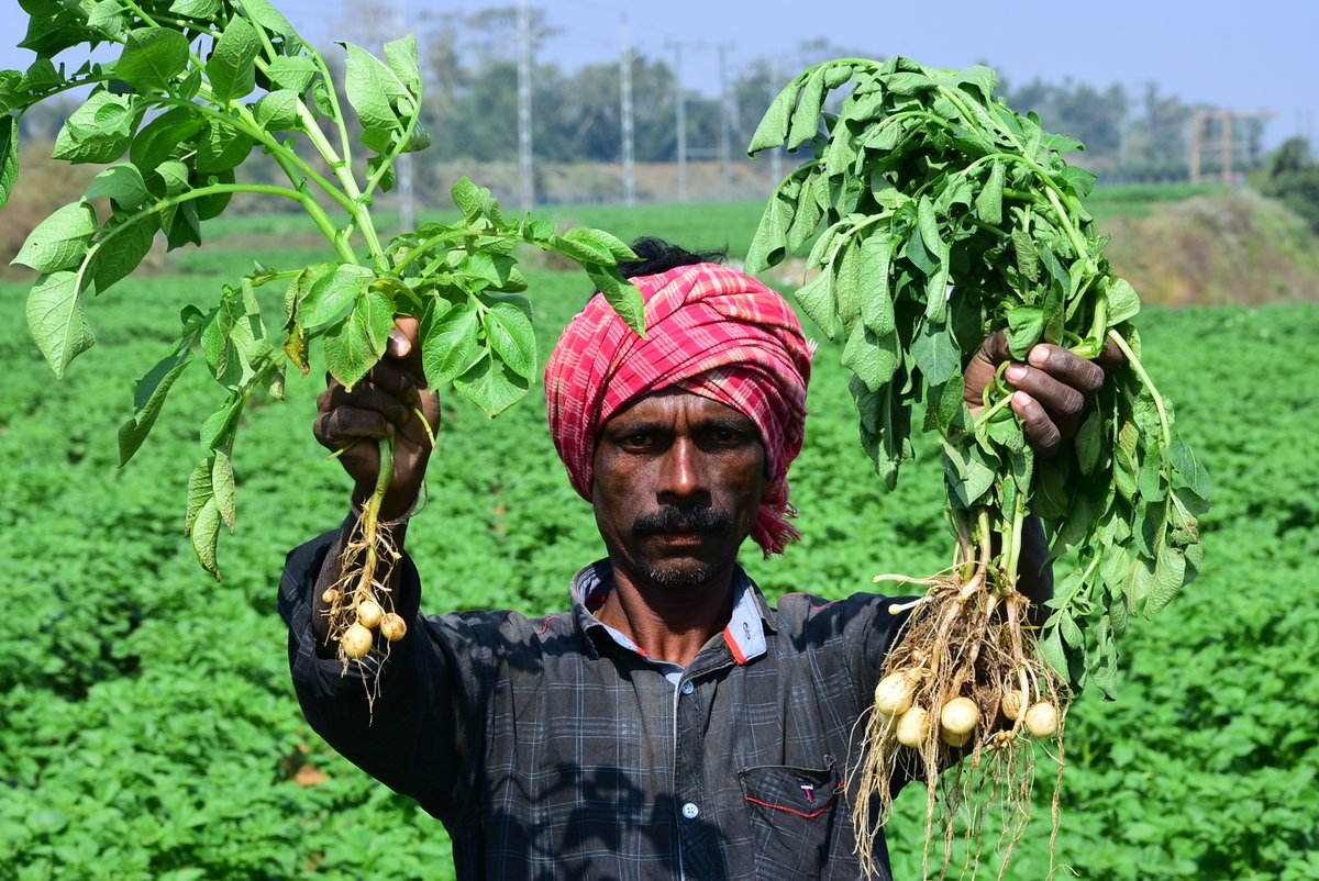#SmallFarmers. An#SFLF farmer comparing the no. of tubers of local low quality potato used as#seed (right) & good quality seed#potatoes of K.Jyoti.pic.twitter.com/SeW0V3eoRF
