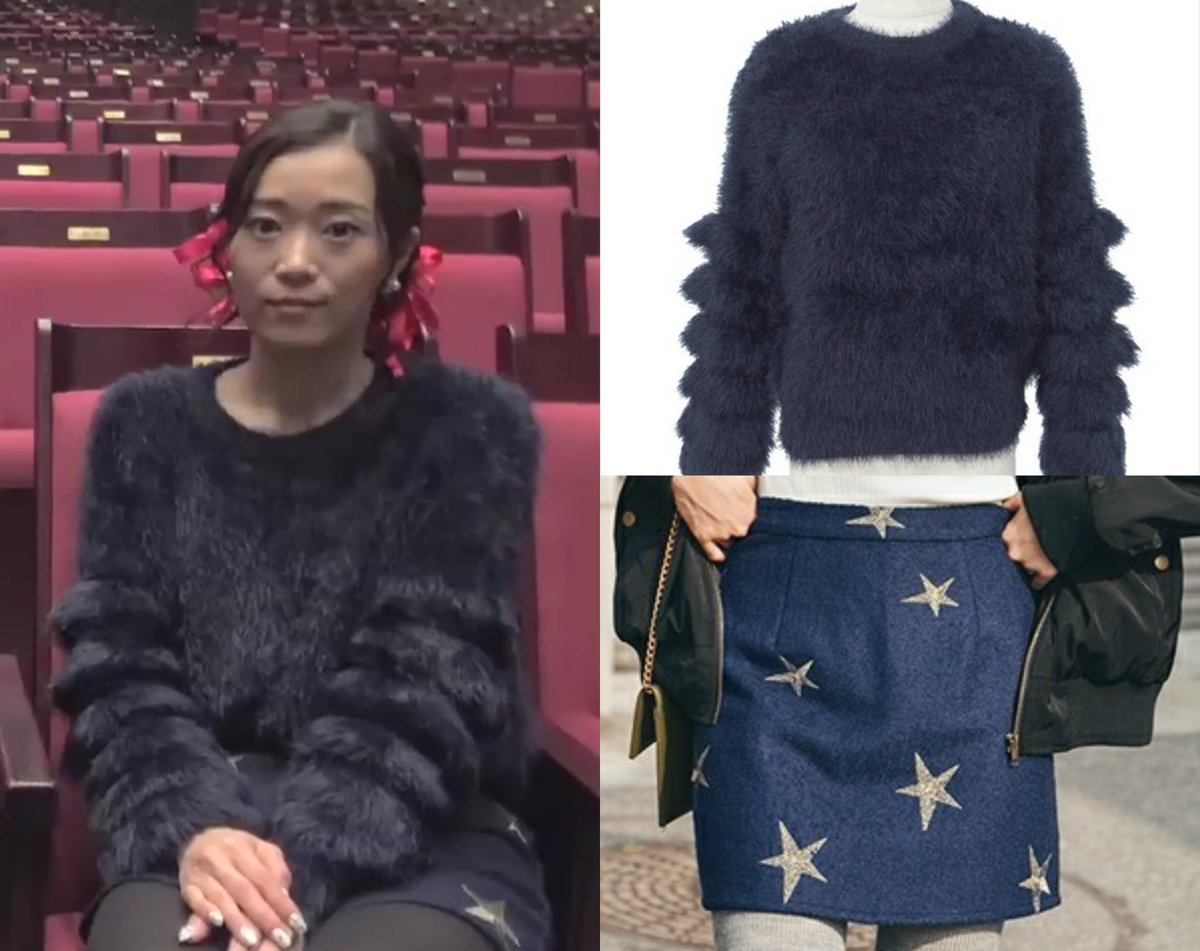 select MOCA フワフワフェザーヤーンフリンジスリーブ長袖シャギーニット select MOCA ゴールドスター刺繍デザインスカート
