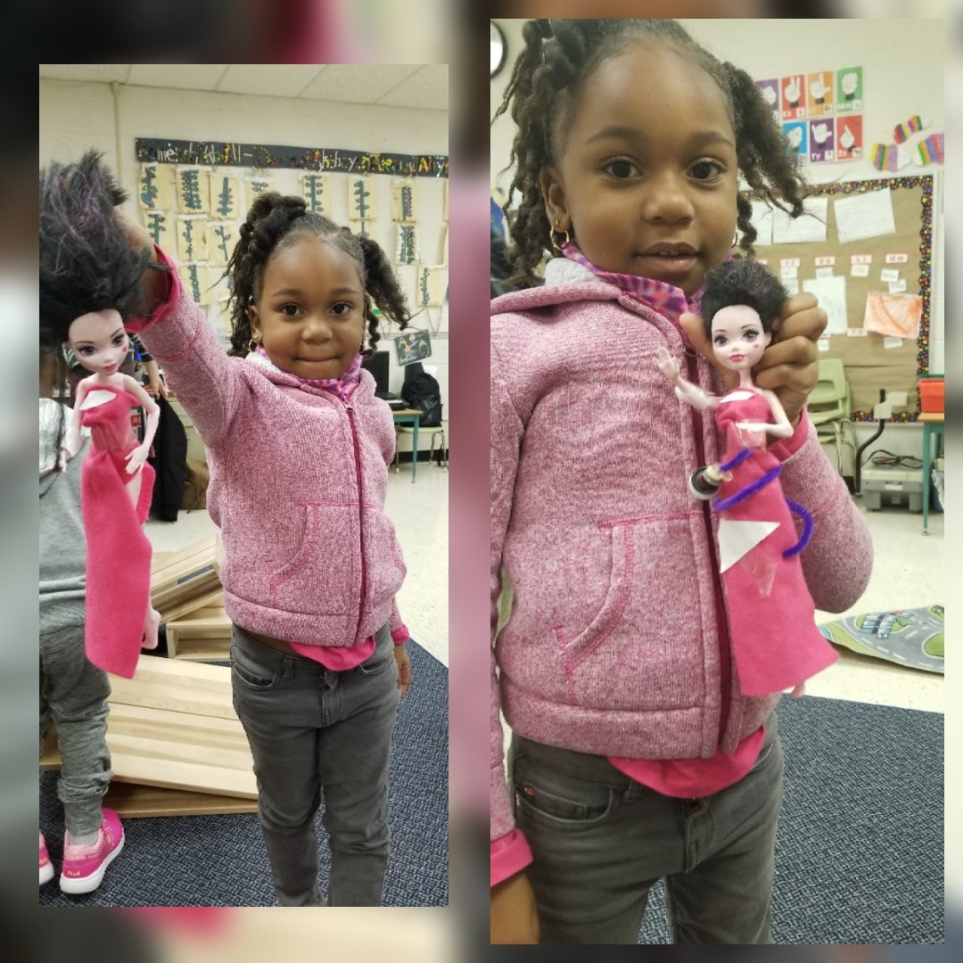This fashion designer asked for some material to create some clothing for the dolls in our class!