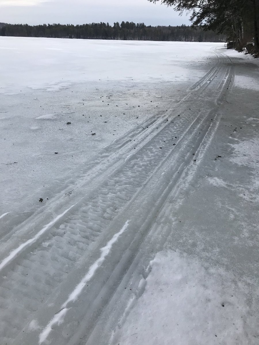 No sign of life at The Point other than snowmobile tracks on the pond.