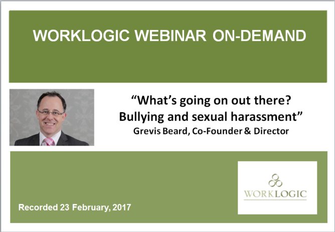 #bullying &#sexualharassment at@WorklogicAU free on-demand webinar http://ow.ly/B8uW30cJhnV pic.twitter.com/PSFxyfEIMs