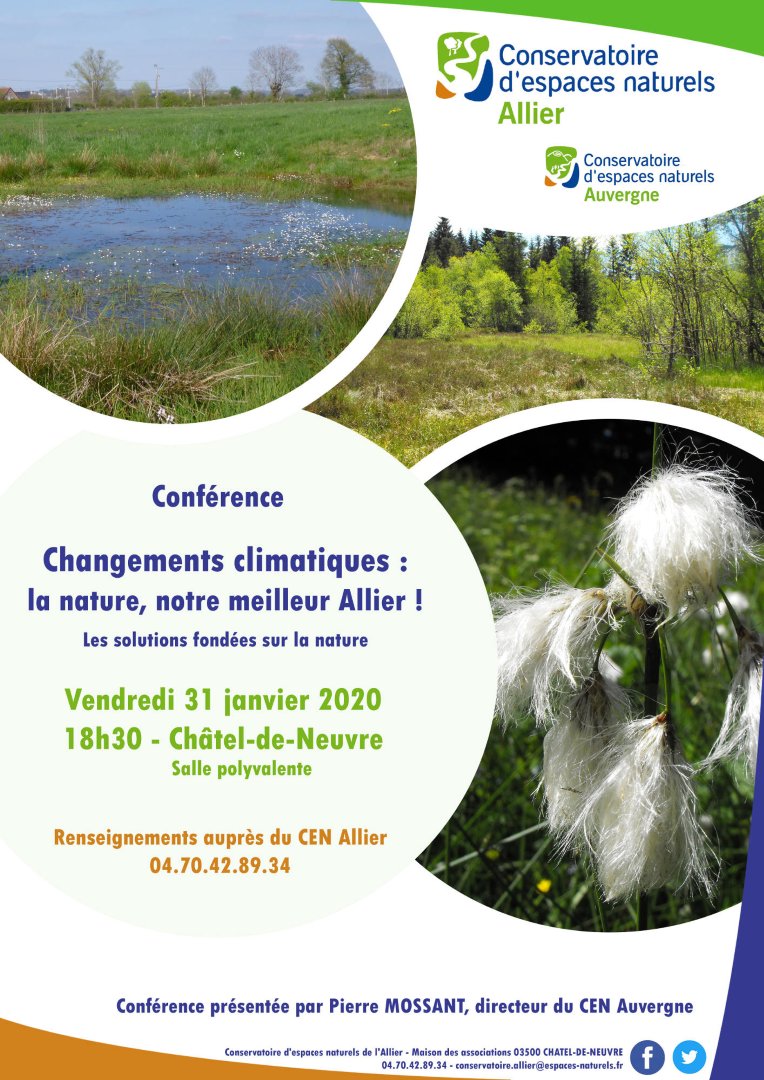 N'oubliez pas de nous rejoindre ce vendredi 31 janvier à 18h30 à la salle polyvalente de Châtel-de-Neuvre pour cette conférence sur les solutions fondées sur la nature pour atténuer les effets du changement climatique. Entrée libre et gratuite