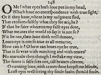 Sonnet 148 O Me! what eyes hath Love put in my head, Which have no correspondence with true sight; Or, if they have, where is my judgement fled, That censures falsely what they see aright? http://amazon.com/Who-Will-Believe-Verse-Shakespeares/dp/192558867X …