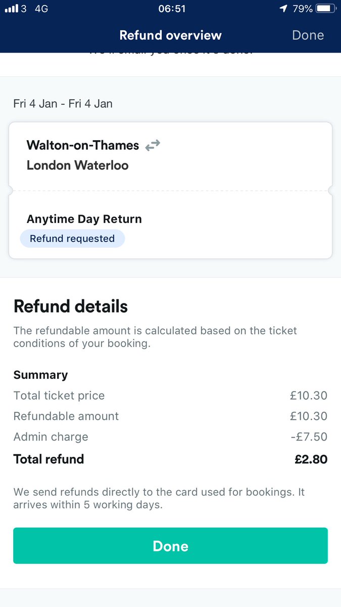 @thetrainline @TrainlineTeam pls issue a full refund! Mistakenly bought a ticket to be used with a disabled user railcard. I immediately requested a refund & bought a ticket at the ticket office. You’ve charged me £7.50 admin charge- 3/4 of the fare?!#shameful pic.twitter.com/7AaWsYbPV1