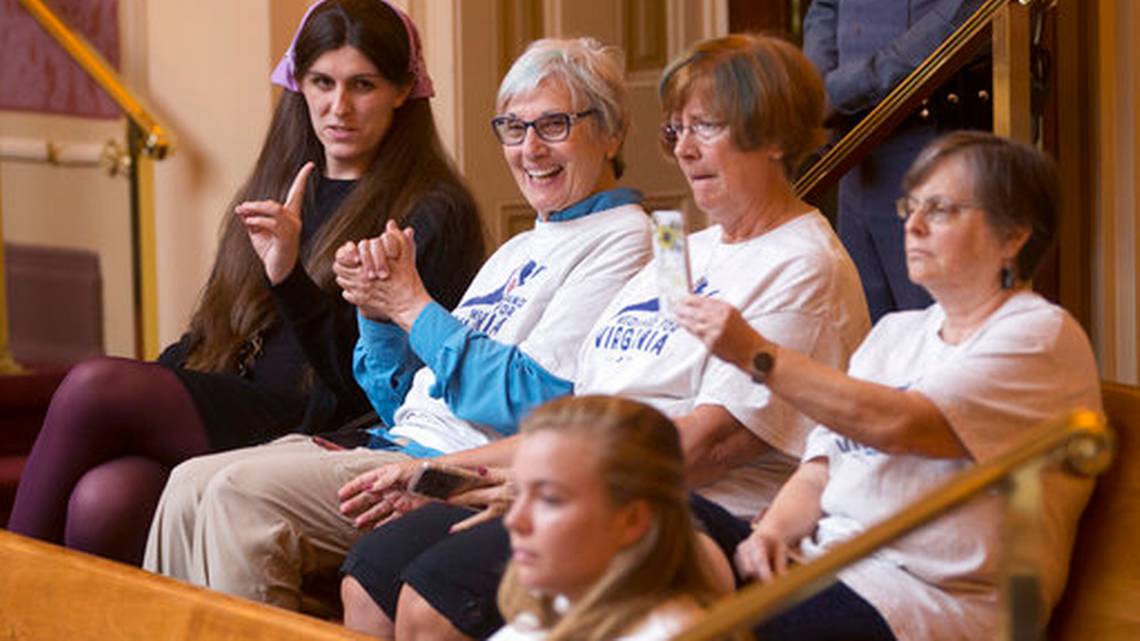 I'm so grateful for Haymarket resident Marilyn Karp. She worked hard to help us win & ended up in the viral photo on Election Night (left). And then she repeatedly showed up in Richmond this year, including today to help us expand Medicaid (right).