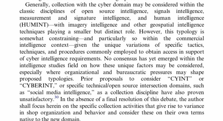 #Intel Aunque hay discordancias según a quien se tome como referencia, las fuentes de obtención de#inteligencia son:#HUMINT#SIGINT#MASINT#OSINT#IMINT. Pese a ciertos intentos (no satisfactorios), la obtención de intel en campo cibernético, no se considera independientepic.twitter.com/TcwKLXGuSZ