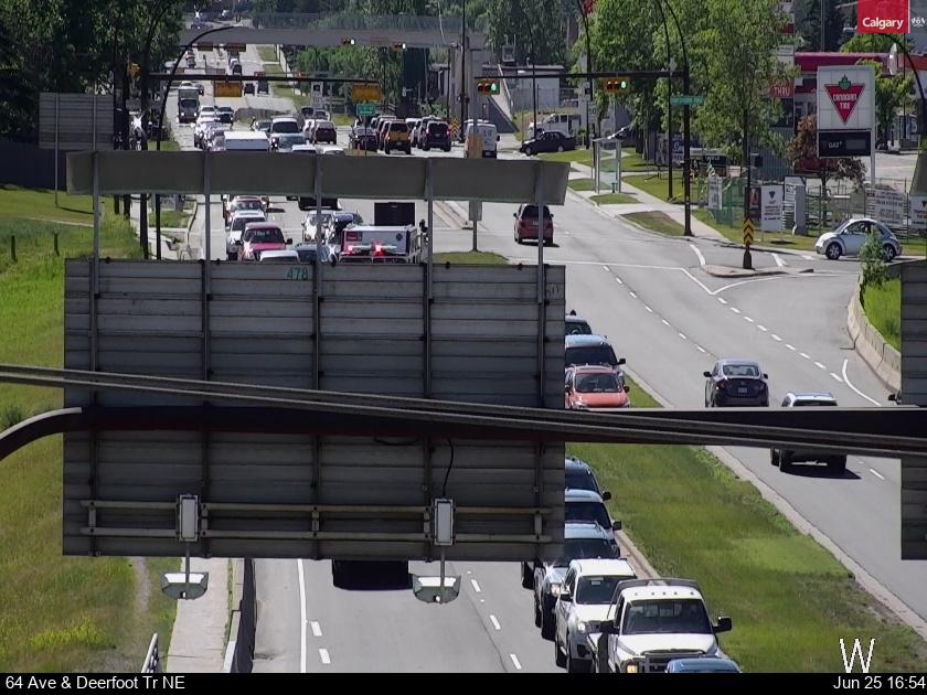 #yyctraffic Behind that sign.. (you can kinda sorta see it).. there's a crash on 64th Avenue approaching Deerfoot Trail, in EB LHL.#SignOfTheTimes pic.twitter.com/S8hXoDk6FU