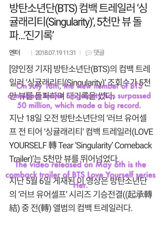 #Singularity has surpassed 50 million, a rare record. Congrats to Taehyung and let’s keep streaming!