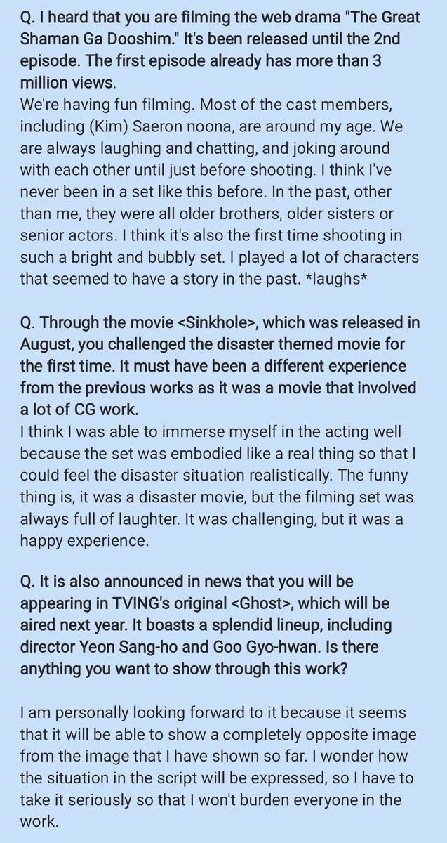 #남다름#NamDareum about working with#KimSaeron in#TheGreatShamanGaDooShim, bits about#Sinkhole#The8thNight and upcoming#Ghost#괴이pic.twitter.com/kMyaJydfyV