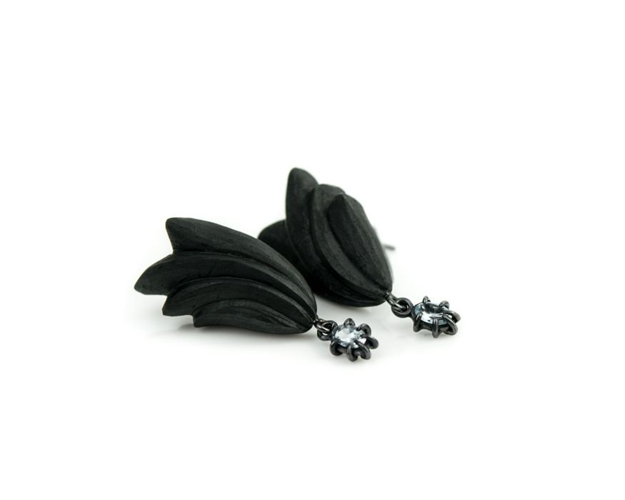 #collection by#jeweller in residence Dovile. These stunning#handcarved#ebony#earrings are complemented by a#skyblue#topaz. To view Dovile's jewellery or the#workshop space we have available feel free to pop in Tuesday-Saturday 1am-4pmpic.twitter.com/PvFS9y5vWO