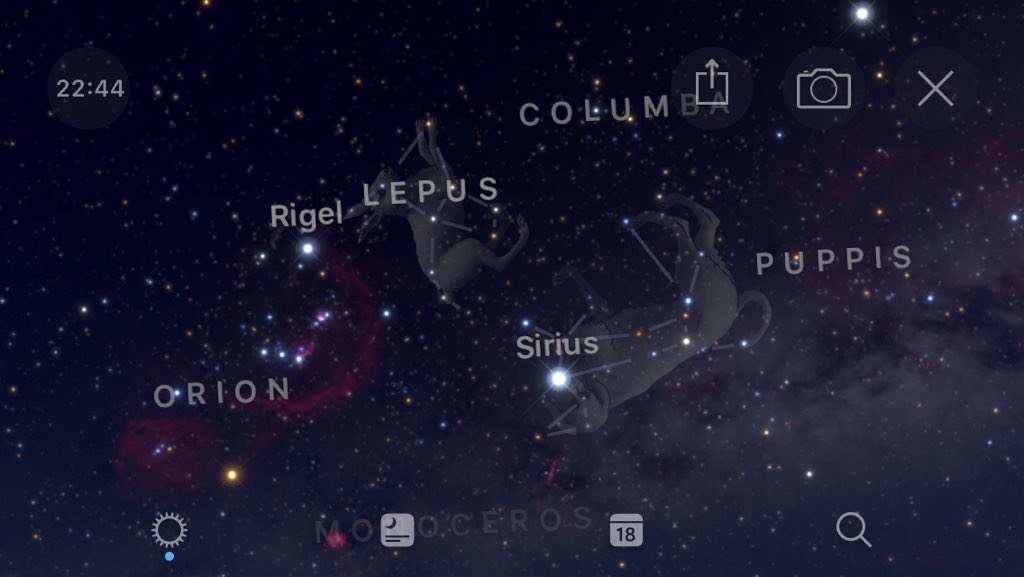 #Orion and#Sirius. I knew they’d be coming soon, but even so, they were a delightful surprise! Tonight,#LookUp! App:#SkyGuide
