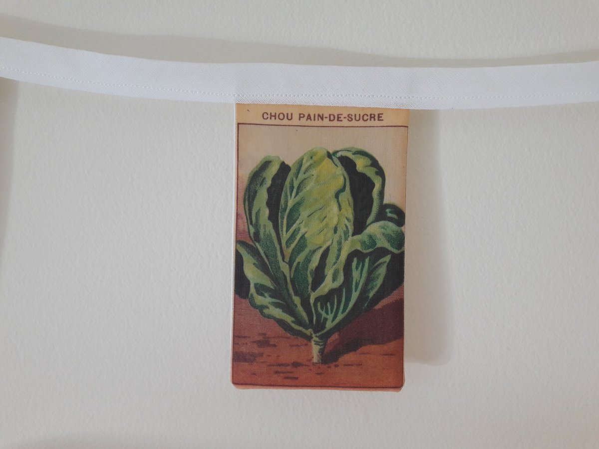 My hand printed French vegetable seed packet bunting is great for a kitchen or greenhouse! Available in my Etsy shop