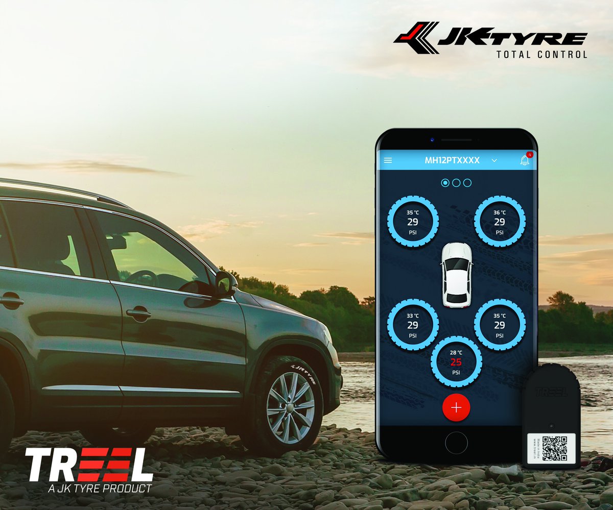 Revolutionizing India's Tyre market,JK Tyre proudly announces the launch of Treel smart sensor-a one of its kind technology based tool geared towards smart monitoring and maintenance of tyres for a safer and total control ride.