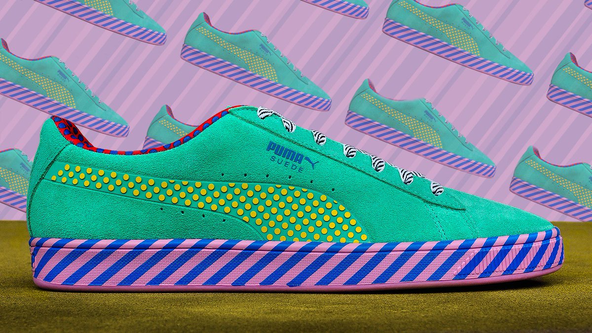 @PUMA 50th anniversary celebration of the venerable#Suede. Our current favorite - and there have been many - is the Suede Street Pop Culture; is there a better#sneaker if you want to add pop to a New Year's Eve party?