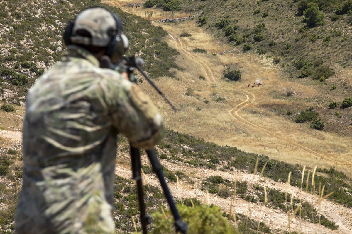 #sniper engages targets hundreds of meters away in a valley in July, 2018 during the ISTC Desert Sniper Course at Chinchilla Training Area, Spain. The two-week course is designed to teach trained sniper teams the necessary skills to operate in a desert environment: pic.twitter.com/KQ4HeZmm0x