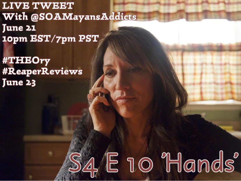 #PrePodcastParty rewatch and “live tweet lite” version of tonight’s#ReaperReviews#SOA S 4 Episode 10#Hands!@Theorossi@KimFCoates#SOAFXpic.twitter.com/00cNPArmNw