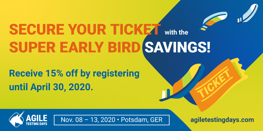 Calling all #agile#softwaretesters in the U.S and Canada! The#AgileTDUSA is taking place on June 21-25, 2020, in#Chicago, IL. Save up to $700 on your registration by booking your ticket before March 31, 2020.
