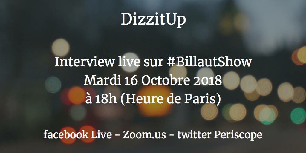 #SaveTheDate Mardi 16/10 18h Interview#live video de@solofo par@Billaut chez#BillautShow sur le projet#Dizzitup. Sur https://buff.ly/2EdQ4jW ou https://buff.ly/2Ok7LTx#renewableenergy#IOT#Blockchain#Crypto#utilities#solar pic.twitter.com/dqK5mASB5V