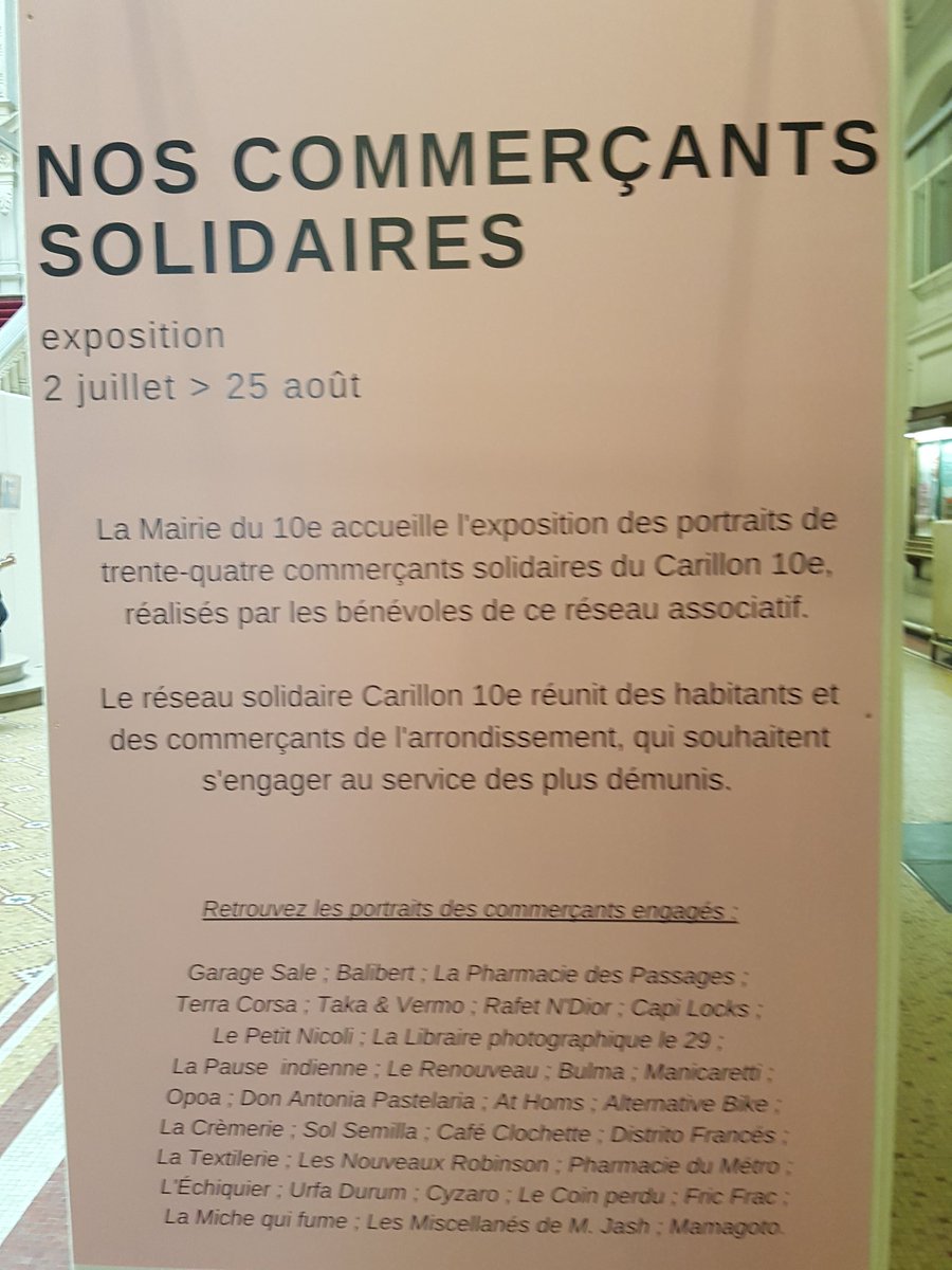 @lecarillon_ s'exposent à la@Mairie10Paris. Un café, un repas, l'accès aux toilettes à l'eau ou à une prise pour charger son téléphone, tous ces petits services changent le quotidien des personnes à la rue. Merci à eux !#Solidarité pic.twitter.com/rMTM5jYdKl