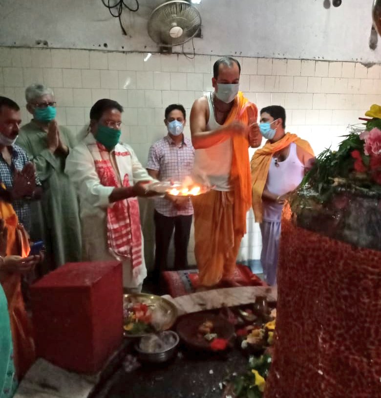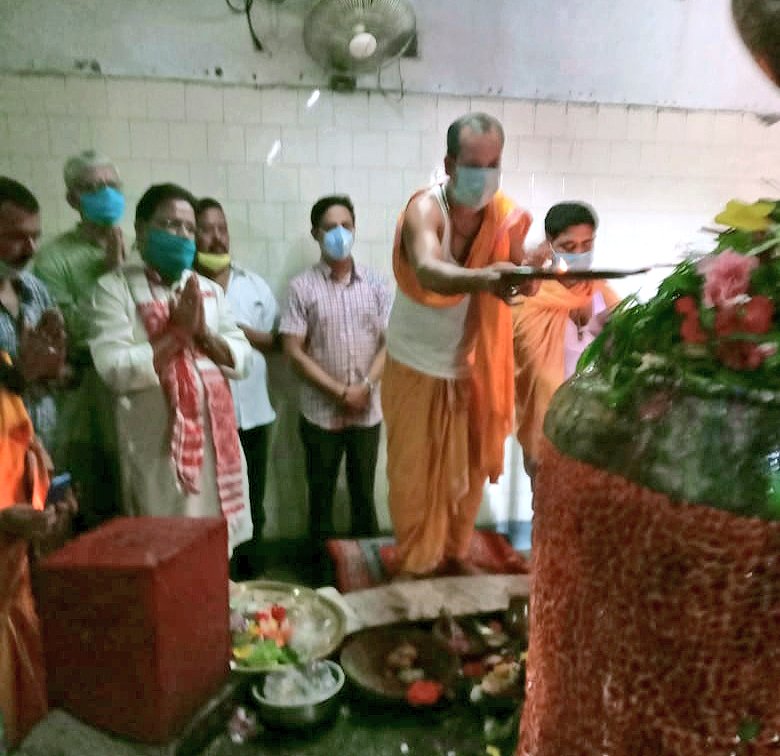 #Sonitpur DCC in the morning visited the historic Mahabhairab Temple and Ganesh Temple prayed to rescue the people from the plight of Pandemic#COVID19 &#AssamFloods.pic.twitter.com/a09zTbszDw