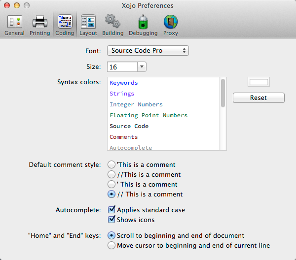 #Xojo. Dans les Préférences/Options, choisissez#SourceCodePro.#IDE#Multiplateforme -