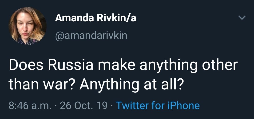 expert of the universe - meet @amandarivkin Please remember this awesome#RussiaMakesNothing tweet next time US