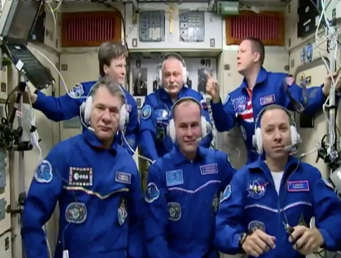#Soyuz docking, the#ISS becomes home of 6 for#VITAmission. Good luck up there,@astro_paolo!