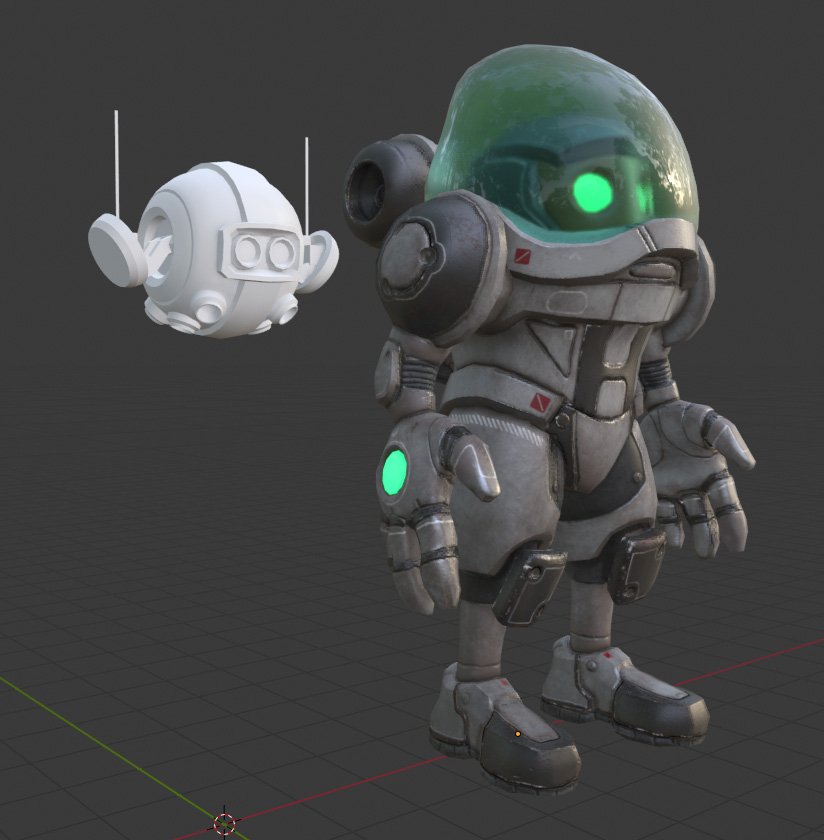 Likely the first enemy that SpaceGuy will face. Im having fun exploring little bots etc. I think next step is to rig and get it all goin in Unity. Build from there... Thoughts?
