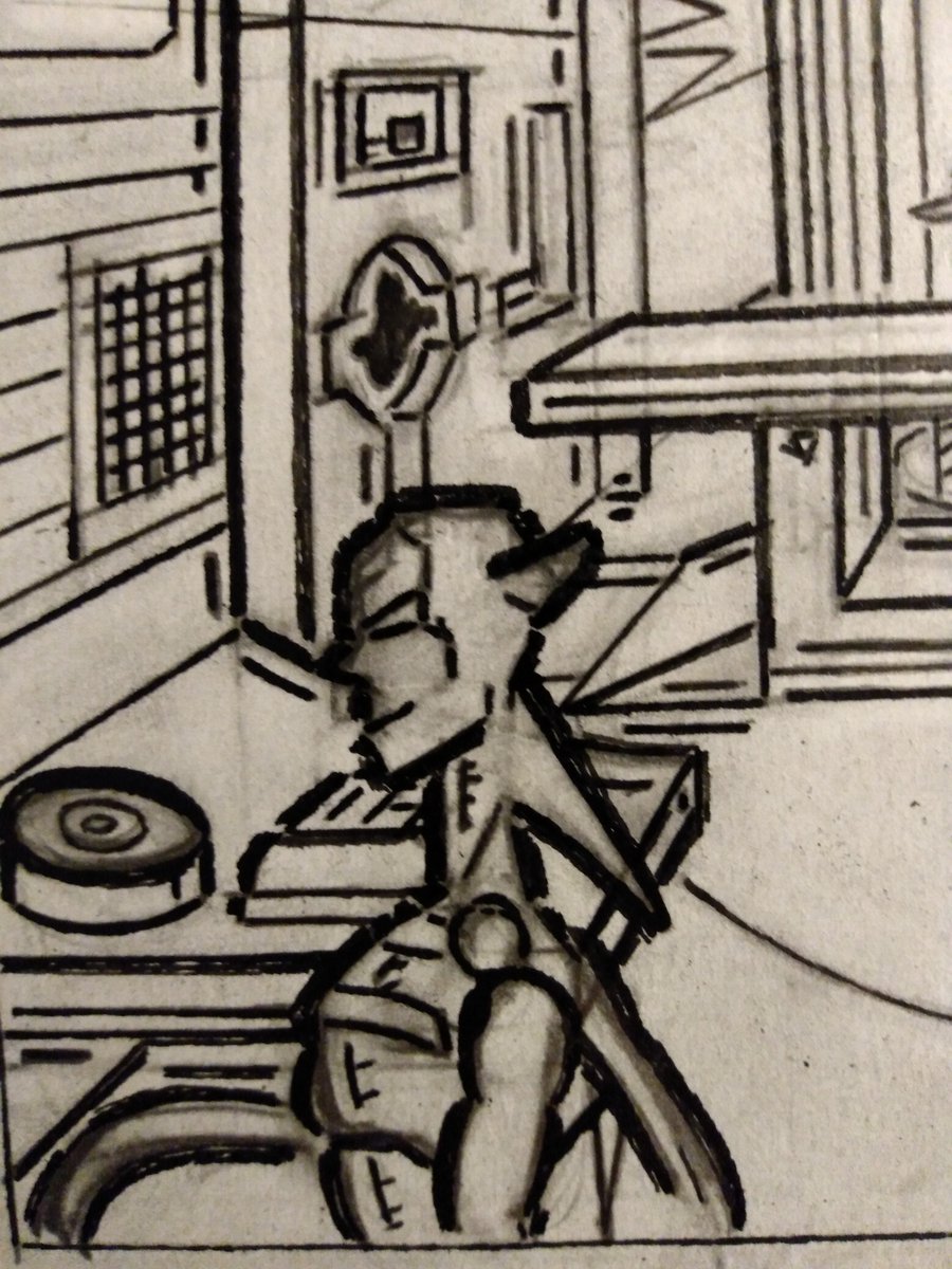Hi, guys!! Inking page 7 has begun!! I thought that I drew the guards on the last panel amateur, but I didn't. Lol