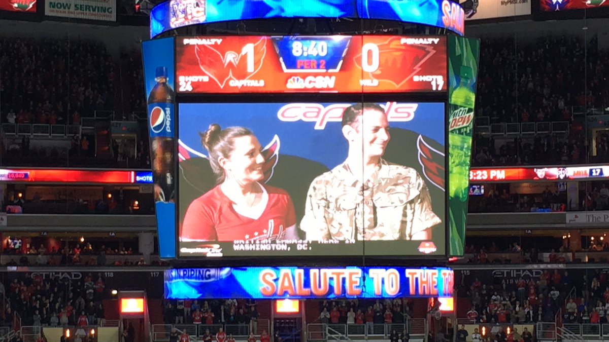 @Capitals for honoring British Army Capt Ghaibi at#CapsWild game during Salute to Troops. Great win!#Caps#specialrelationship pic.twitter.com/epyKZ7p9tT