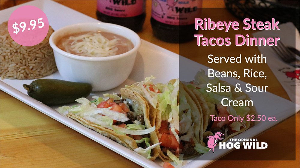 #Specials. RIBEYE STEAK TACOS $2.50 ea. or Dinner w/Rice, Beans, Salsa & Sour Cream $9.95. RIBEYE STEAK BURRITO $6.95 ea or Dinner w/Rice, Beans, Salsa & Sour Cream $9.95. 2 POUND BONE-IN PORK ROAST DINNER w/Red Potatoes, Corn & Garlic Bread $11.95#Chicago#BBQpic.twitter.com/oMUQBfzfGE