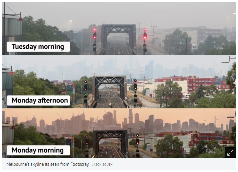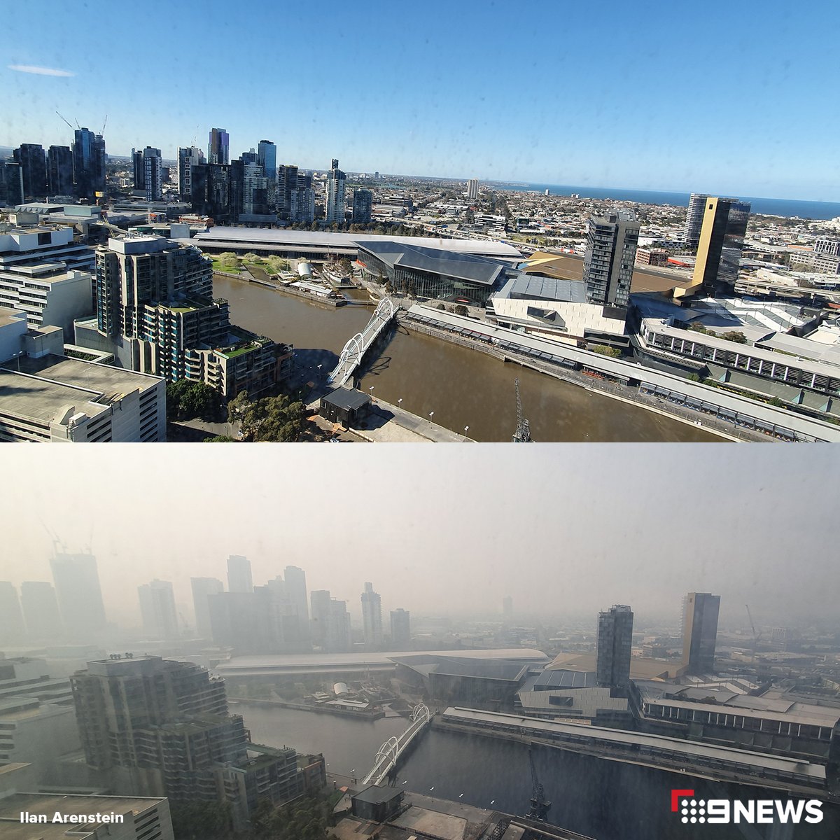 Another photo that compares the view in clear skies vs smoke haze in Melbourne. Ping