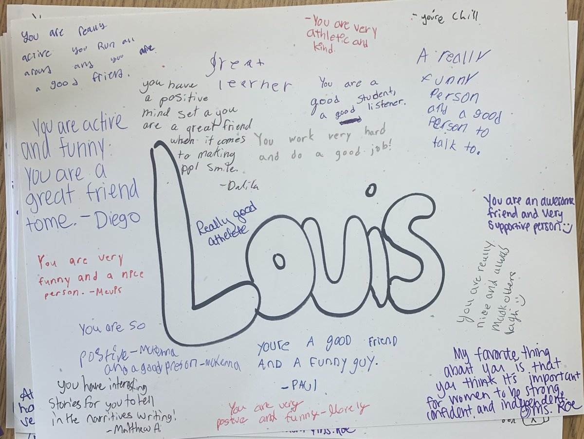 My advisory kids made me proud today giving specific and thoughtful compliments to their classmates