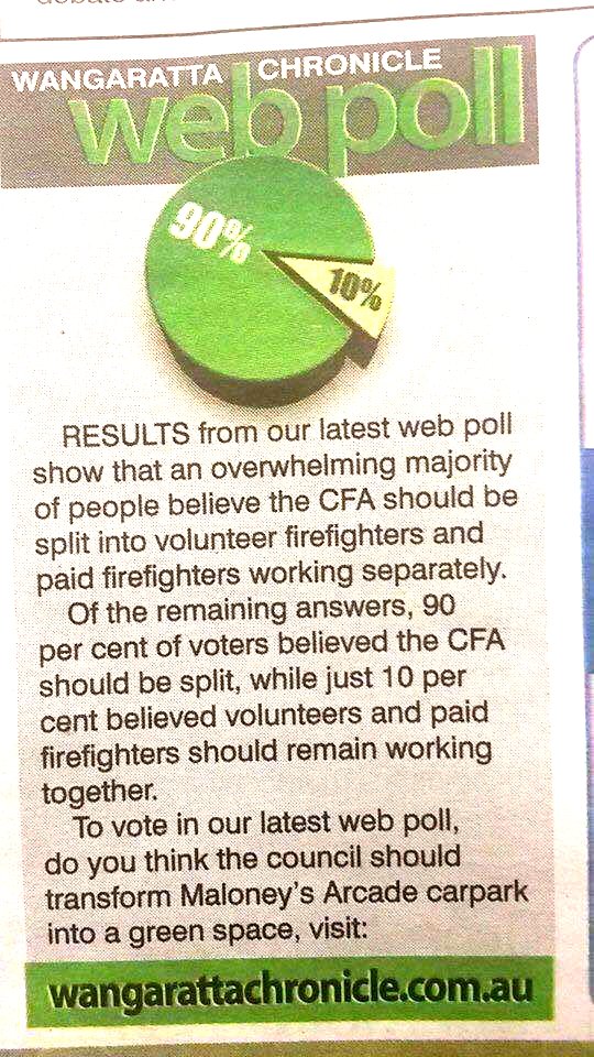 90 per cent of voters support fire service reform, in Wangaratta Chronicle poll.