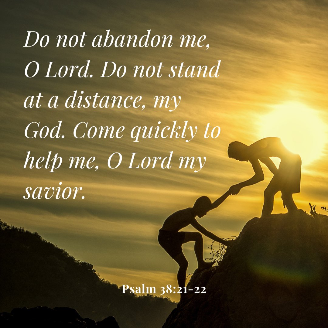 Do not abandon me, O Lord. Do not stand at a distance, my God. Come quickly to help me, O Lord my savior. Psalm 38:21-22