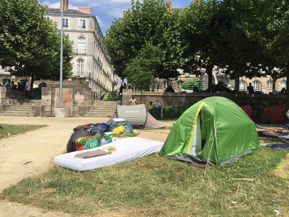 #SquareDaviais à#Nantes. Beaucoup de passants s’arrêtent, discutent avec les réfugiés. « Ils avaient établi une mini-société » regrette une habitante du quartierpic.twitter.com/Y6LZ5nIeU9