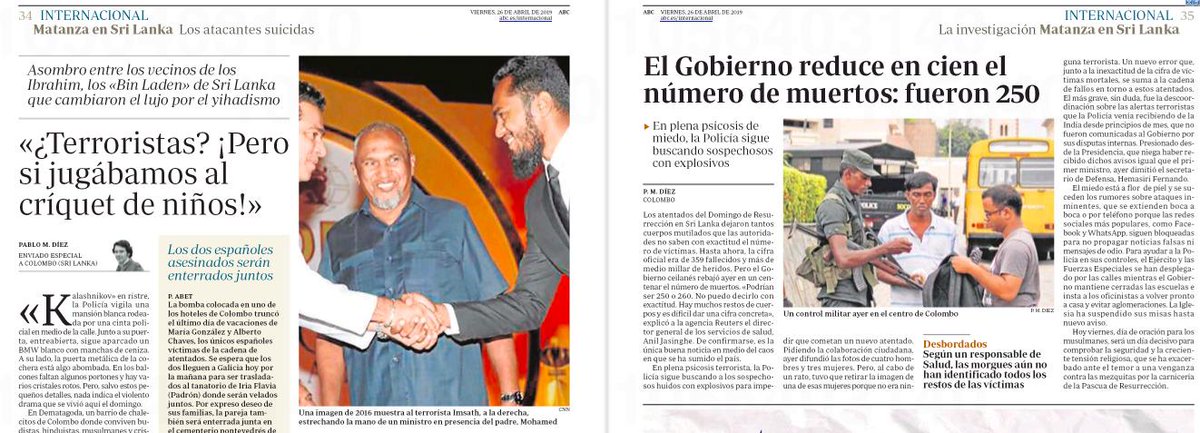 #SriLanka y la reducción del número de víctimas mortales de 359 a unas 250, la única buena noticia en medio de todo este caos, hoy en@abckioskoymas.pic.twitter.com/bZxT6TVP8l