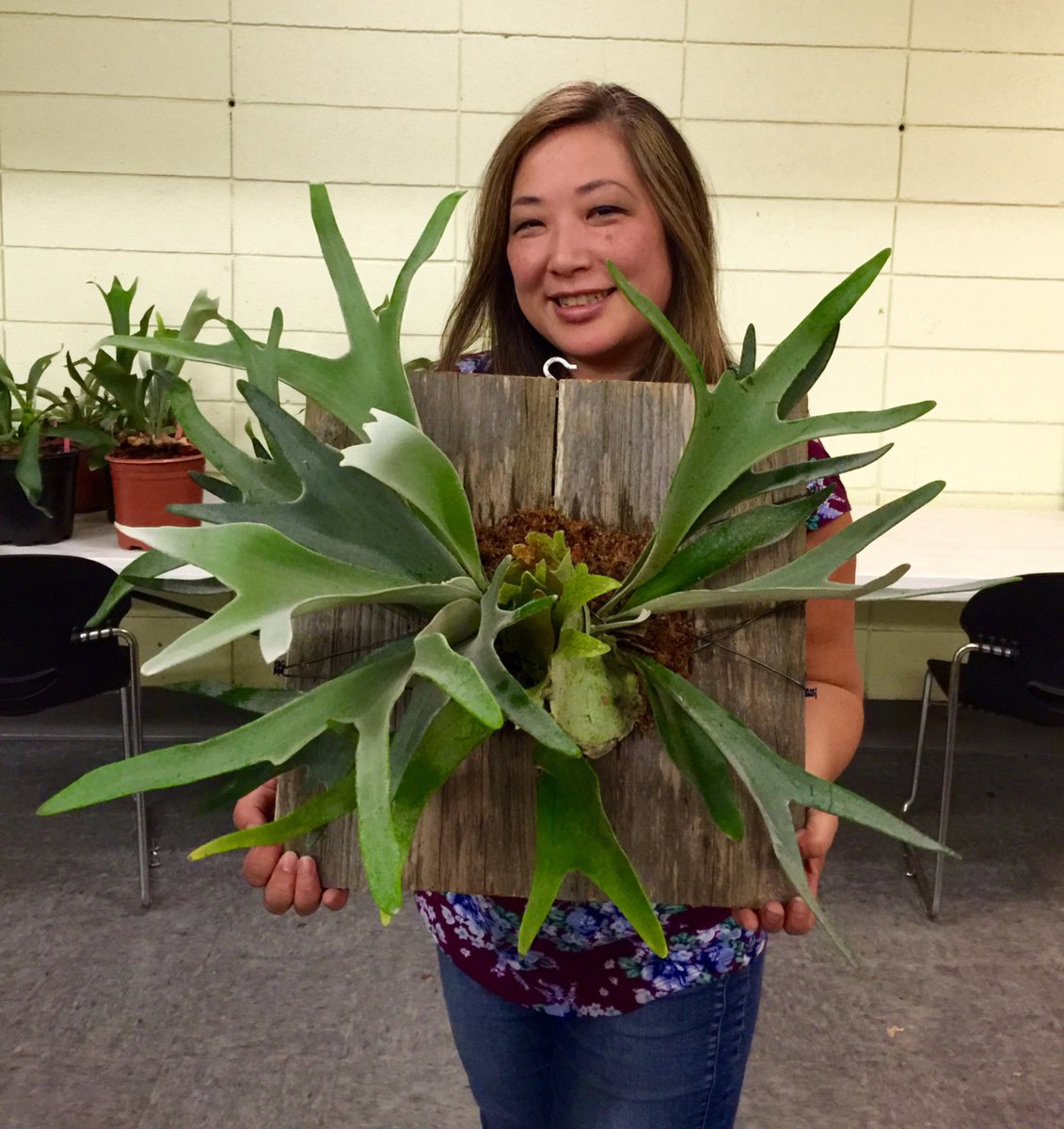 ?! Yesss! What a fun time at the #SFBotanicalGarden#StaghornFern Mounting#Workshop! Think I'll name this guy "Bobby S. Fern!"