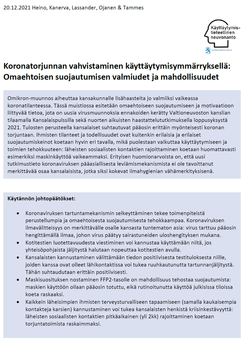Mutta tästä linkistä voi ladata VNK:n Kettu-ryhmän* tuoreen koronavastemuistion: