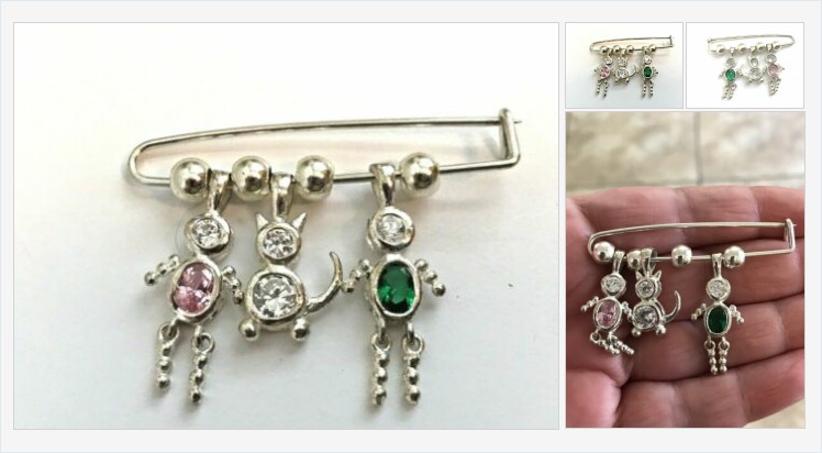 Vintage Sterling Silver Bratz Kitty Cat Birthstone Safety Pin Charm Brooch Pin | eBay
