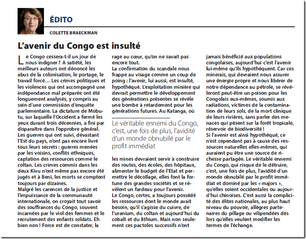 #Stopcorruption Dans son edito du jour, le journal belge Le Soir revient sur le scandale géologique en#RDC et le fait que les mines qui auraient dû être un levier pour le développement du pays suscitent un peu plus chaque jour les appétits gloutons des gdes sociétés.pic.twitter.com/TIwqqWdiWo