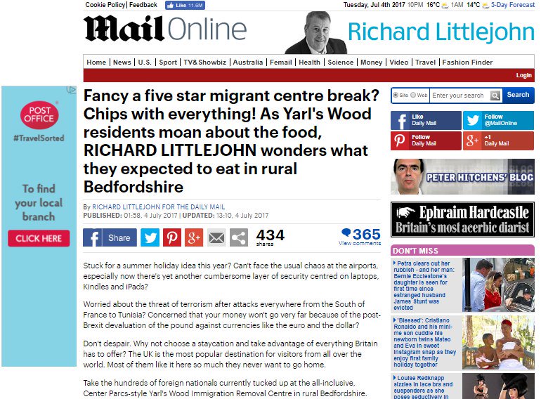 @marksandspencer your advert is alongside an article in the@MailOnline comparing an immigration centre to a holiday camp?#StopFundingHate pic.twitter.com/pYddhUMQUa