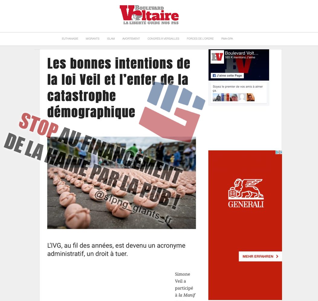 @GeneraliSchweiz Your ad pops up on the French extreme hatesite#BVoltaire.fr. Pls#StopFundingHate, remove it from your adbuy pic.twitter.com/gl3uUNyvY2