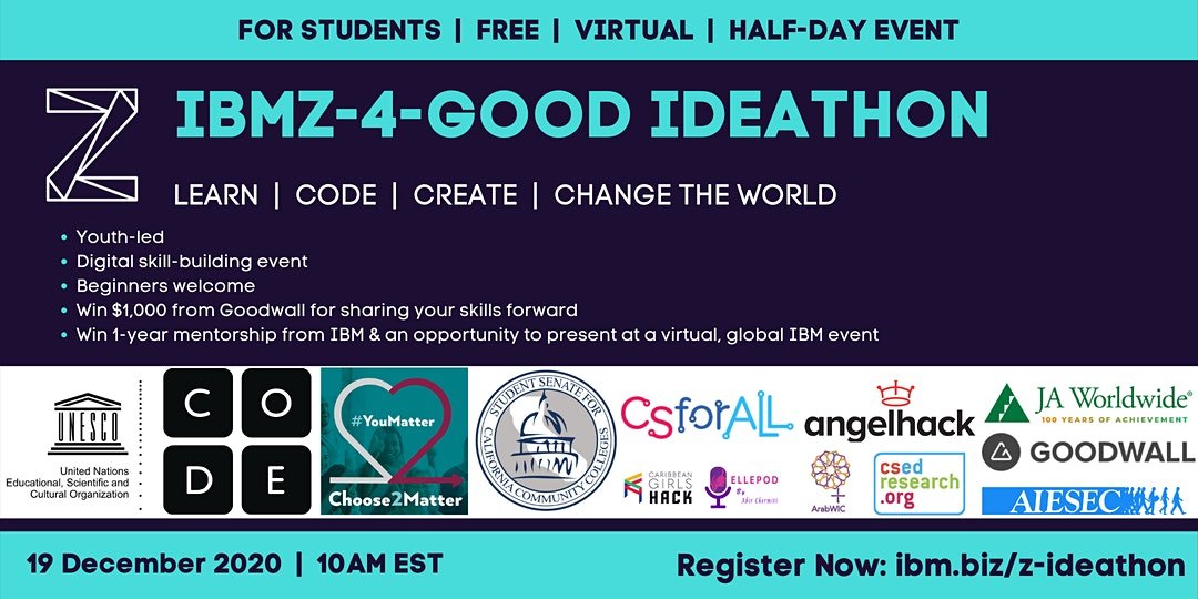 #Students change the world! 19 Dec#tech4good w@UNESCO@codeorg@CSforALL - join in@CSforAllTchrs#homeshool@HipHmschoolMoms@WITI@GirlsinTech@GirlsWhoCode http://ibm.biz/z-ideathon pic.twitter.com/4BSx0VerOW