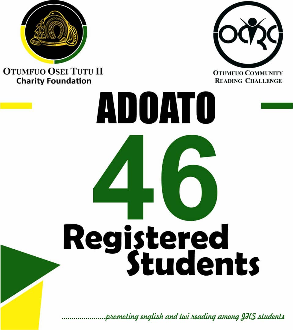 Registered students per community for Otumfuo Community Reading Challenge. Promoting English and Twi reading among JHS students.