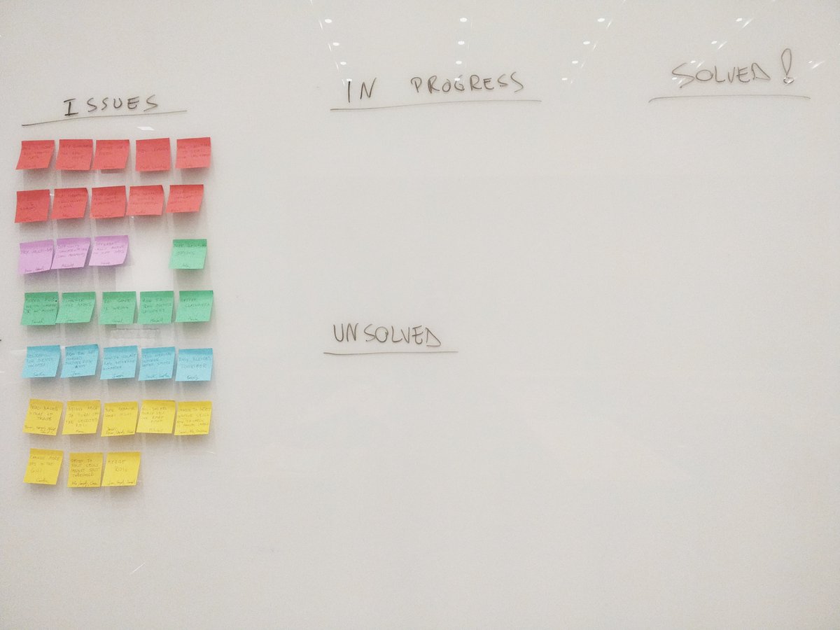 Here's the board of issues at the end. Lots of progress during the