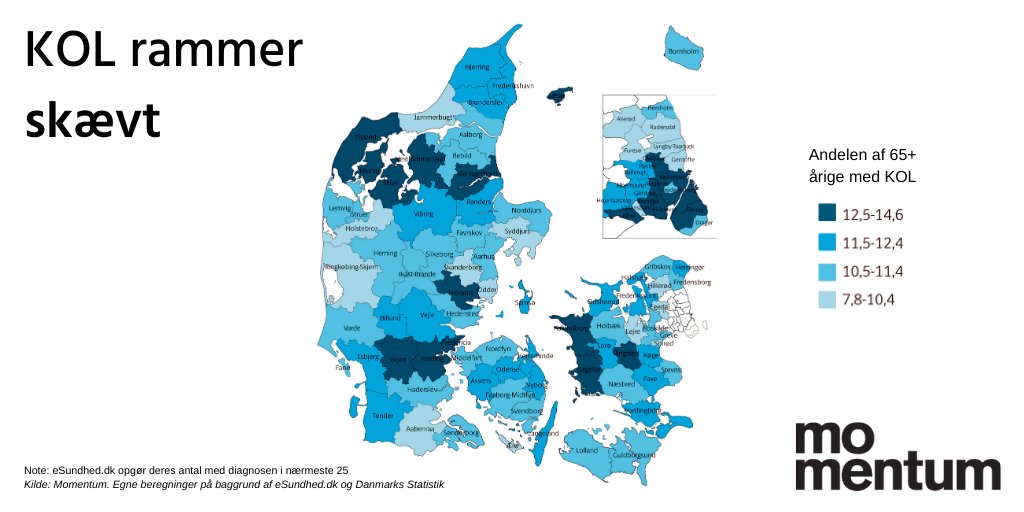 Antallet af 65+årige med KOL er steget de seneste år. Sygdommen går hårdt ud over den enkelte, som bliver hyppigere indlagt og kræver øget pleje, jo mere sygdommen udvikler sig. KOL rammer dog geografisk skævt, viser ny Momentum-opgørelse https://www.kl.dk/nyheder/momentum/2020/nr-4/lungesygdommen-kol-rammer-geografisk-skaevt/ …